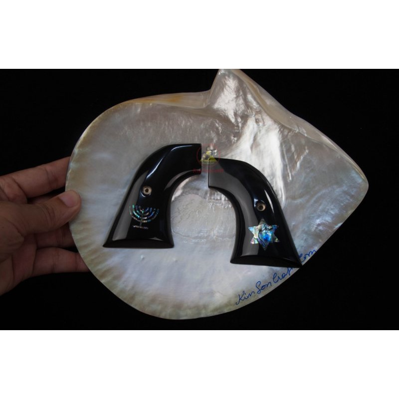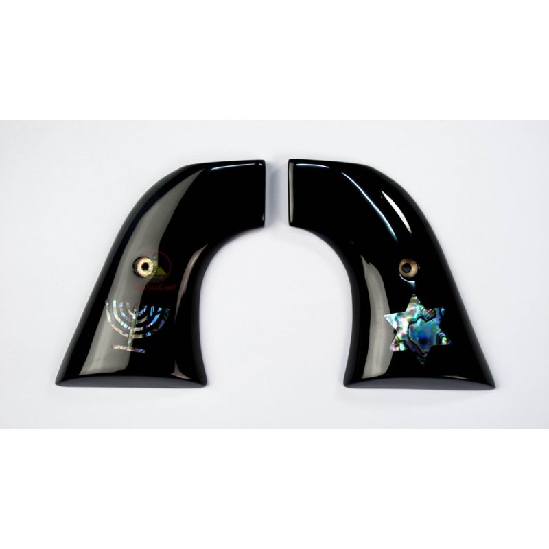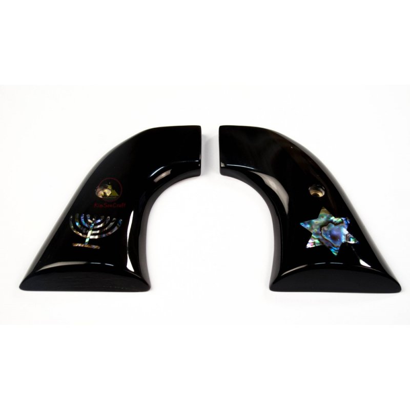 Revólver Ruger apertos - chifre de búfalo de água preta com incorporado "estrela de David" e "Menorah" de Abalone verde